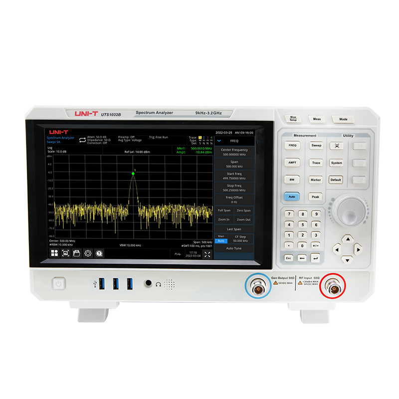 微弱信号的测试容易受到频谱仪本身的本底噪声影响。UTS1000B 系列显示平均噪声电平低于-161dBm,有效的保证了对微小信号的测量能力。